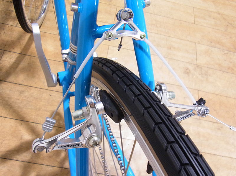 クロモリメインチューブにカンチブレーキを装備し、泥除け・キャリアも装備できるダボ穴に若干太目のタイヤと、ランドナー仕様にも仕上げやすく、往年の自転車ファンも刺激する一台です。
