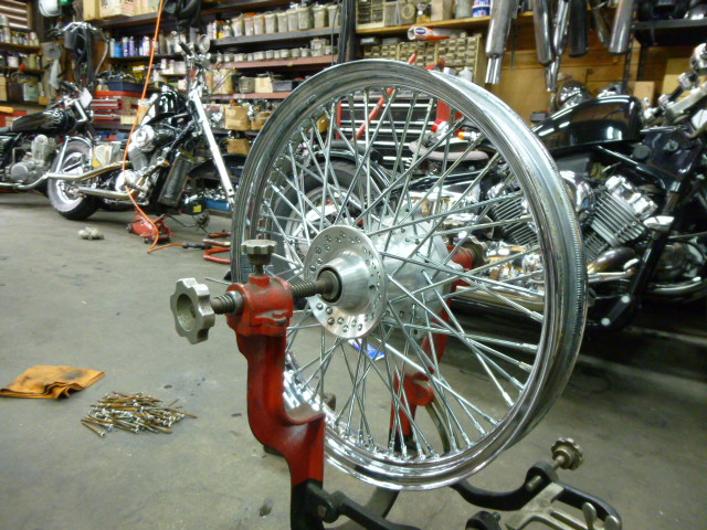 今日は、スティードカスタムちゃんのスポーク張り変えです。。。